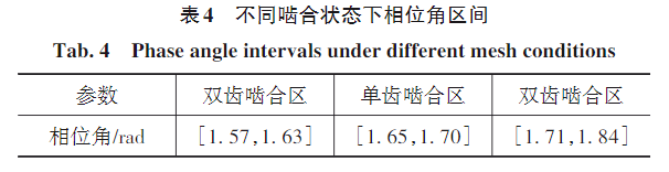 在整個(gè)嚙合周期內(nèi),基于三截面構(gòu)造的齒輪的最大接觸應(yīng)力出現(xiàn)在單齒嚙合區(qū),可達(dá)到138.3 MPa,如圖10(a)所示;最小接觸應(yīng)力出現(xiàn)在雙齒嚙合區(qū),應(yīng)力值為89.78 MPa;而多截面構(gòu)造的誤差齒輪在單齒嚙合區(qū)的1.68 rad嚙合相位處出現(xiàn)嚙合周期內(nèi)最大接觸應(yīng)力,其應(yīng)力值為158.4 MPa,如圖10(b)所示,與三截面構(gòu)造的誤差齒輪結(jié)果偏差13.1%。在退出嚙合時(shí),兩者結(jié)果偏差為22.7%。從圖10可以看出,在每個(gè)嚙合區(qū)內(nèi),多截面構(gòu)造的誤差齒輪的最大接觸應(yīng)力變化更為明顯,浮動(dòng)更大。