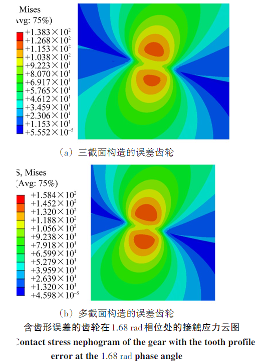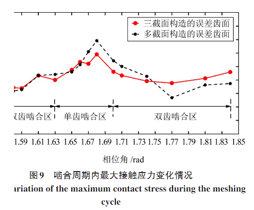 4.2嚙合周期內(nèi)誤差齒輪的齒面接觸應(yīng)力對(duì)比研究