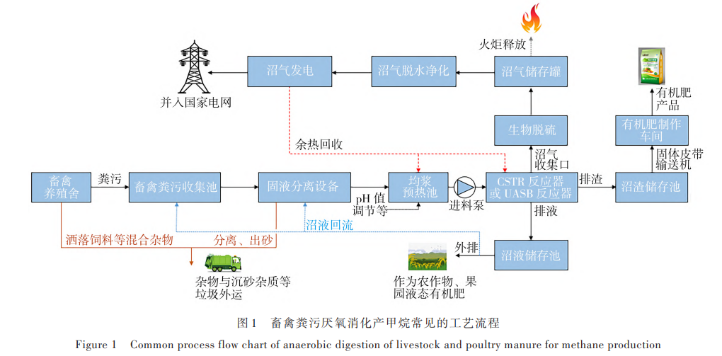 摘 要:在畜禽養(yǎng)殖方式逐漸規(guī)模化的背景下,規(guī)模化養(yǎng)殖所產(chǎn)生的糞污具有集中排放量大、處置需求強(qiáng)的特點(diǎn),這為 利用厭氧消化技術(shù)處置畜禽糞污來(lái)實(shí)現(xiàn)沼氣產(chǎn)量、產(chǎn)能效益最大化提供了契機(jī),完全契合我國(guó)能源結(jié)構(gòu)優(yōu)化、碳中和 等戰(zhàn)略的需要。然而,由于畜禽糞污組分復(fù)雜、厭氧消化調(diào)控操作條件繁多以及技術(shù)自身反應(yīng)速率限制等原因影響, 厭氧消化技術(shù)在處置畜禽糞污過(guò)程中存在產(chǎn)氣效率低、過(guò)程穩(wěn)定性差的缺陷,掌握其產(chǎn)甲烷效能關(guān)鍵影響因素變得尤 為重要。該文分析介紹了不同畜禽糞污的特性以及影響其厭氧消化產(chǎn)甲烷潛力的原因,綜述了近年來(lái)畜禽糞污厭氧 消化的溫度、pH、氨氮等主要環(huán)境因子以及進(jìn)料負(fù)荷、進(jìn)料方式等外部調(diào)控因素對(duì)產(chǎn)甲烷效能、微生物群落豐度的影 響研究,探討了投加功能菌劑、導(dǎo)電材料等輔助方式對(duì)系統(tǒng)產(chǎn)甲烷效能提升的作用以及系統(tǒng)微生物的反饋機(jī)制,對(duì)后 續(xù)的重點(diǎn)研究方向進(jìn)行了展望,以期為未來(lái)的畜禽糞污厭氧消化技術(shù)理論研究與工程應(yīng)用提供參考。
