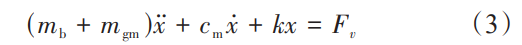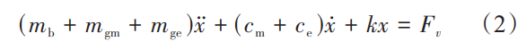 式中,mb為減速帶質量;mgm為傳動模塊中單向離合器 之前傳動部件的等效質量;mge為單向離合器之后包括 齒輪箱,以及發電機轉子等部件的等效質量;cm為系 統的等效黏滯阻尼系數;ce為發電機產生的電磁阻 尼系數;k 為系統的等效剛度;x 為系統的動態響應。 圖4(a)中,H表示減速帶的最大下降位移。
