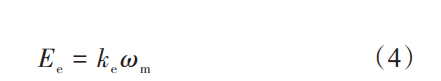 式中,ke為直流發電機的反電動勢系數;ωm為發電機轉 子轉速。發電機發電時產生的電磁阻力轉矩與電路 中的感應電流相關,即
