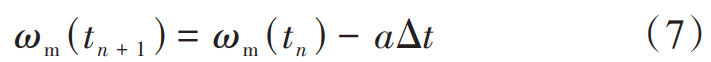 式中,ωm (tn+1 )為下一時刻的發電機轉速;ωm (tn )則為此 時的發電機轉速;a為電磁轉矩所產生的加速度;Δt為 時間間隔。其中電磁轉矩所產生的加速度為式中,Je為分離模式下持續轉動部件的附加等效轉動 慣量。