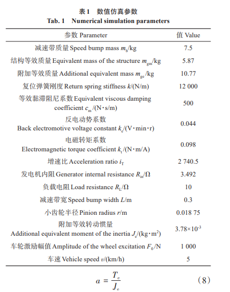 觀察式(1)~式(6)不難發現,外部激勵、等效質 量、等效阻尼系數及等效剛度等均對 DBEH 的響應特 性產生影響,故本節將分析上述參數對 DBEH 饋能特 性的影響規律。