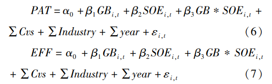 國有企業作為中國經濟發展的核心力量, 其 主要任務之一是實現國家的宏觀經濟政策和戰略 目標。 作為國家意志的體現者和執行者, 國有企 業通常會優先考慮國家的整體利益和長期發展目 標, 而非短期的市場波動, 這意味著國有企業不 僅在經濟增長和產業升級中發揮著重要作用, 還 承擔著諸如緩解就業問題、 穩定社會等一系列社 會責任。 與非國有企業相比, 國有企業在市場競 爭中的目標和行為方式往往有所不同, 國有企業 在決策過程中更傾向于保持穩定和持續性, 避免 因市場情緒或網絡輿論的波動而頻繁調整策略, 這使得它們對市場信號的反應相對較弱, 特別是 在面對網絡輿論時, 不會輕易受到短期輿論壓力 的左右, 所受到的影響可能更小。 基于此, 本文 為檢驗產權性質 ( SOE) 對原假設可能造成的影 響, 故構建模型 (6) 與模型 (7) 進行檢驗, 產 權性質 (SOE) 與網絡輿論 (GB) 的交乘項回歸 系數為該部分重點觀察對象, 若國有企業對網絡 輿論所造成的影響不夠敏感, 則回歸系數應當為 正且顯著。