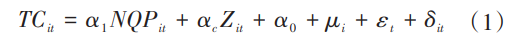 其中,i 表示省份,t 表示年份;TCit 為被解釋變 量,表示某省某年份的貿易競爭力;NQPit為核心解 釋變量,表示某省某年份的新質生產力;Zit 表示控 制變量,μi 表示個體固定效應,εt 表示時間固定效 應,α0為截距項,δit為隨機擾動項。