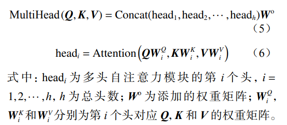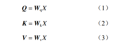 式中:Wq,Wk,Wv 分別為 Q,K,V 的權(quán)重矩陣;X 為輸 入序列數(shù)據(jù)。