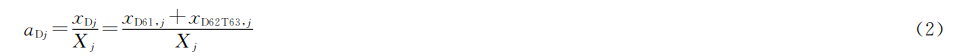 其中,aDj表示行業j數字服務貿易規模實交比,也就是數字技術與行業j之間的直接消耗系數,Xj 表示行業 j的總投入,xDj表示行業j生產中對數字技術的消耗,為行業j生產中對 D61電信的消耗xD61,j與生產中對 D62T63信息技術和其他信息服務的消耗xD62T63,j之和。