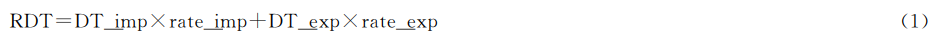 ?。遥模裕剑模裕撸椋恚?times;rate_imp+DT_exp×rate_exp (1) 其中,RDT 為實際數字貿易交付總額,DT_imp為數字可交付貿易進口額,DT_exp為數字可交付貿易出口 額,rate_imp和rate_exp分別為進口實交比和出口實交比。