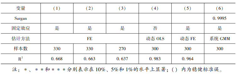 為了緩解遺漏變量問題帶來的估計偏誤, 本文參考現有研究 (杜雯翠等, 2017; 王慧等, 2020; 屈小娥和駱海燕, 2021) [40-42] , 加入如下控制變量: (1) 能源消費結構 (ECS): 以能源消 費總量中煤炭消費量所占的比重來表征 ECS。 這一指標越高, 說明能源消費結構越不清潔。 (2) 工業所有制結構 (ISOE): 采用國有控股工業企業數量占工業企業總數的比例作為替代指標來衡 量 ISOE。 (3) 外商直接投資 (FDI): 采用實際利用外商直接投資額占 GDP 的比值來衡量 FDI。 (4) 對外直接投資 (OFDI): 以對外直接投資額 (非金融類) 與地區生產總值之比來衡量 OFDI。 (5) 政府環保支持 ( GEPE): 采用地方財政環境保護一般預算支出占 GDP 的百分比來衡量 GEPE。