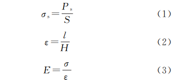 式中:σs 為 軸 向 應 力,MPa;Ps 為 試 塊 破 壞 荷 載, kN;S 為試塊截面積,mm2;ε 為軸向應變;l為試塊 軸向變形量,mm;H 為試塊初始高度,mm;E 為彈 性模量,GPa;σ為試塊所受的壓應力,MPa.
