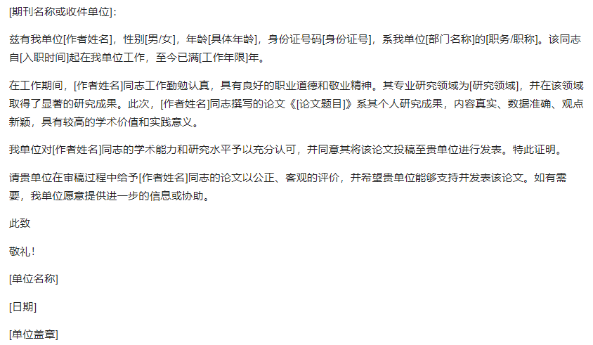 如果期刊要求提供單位介紹信,作者需要了解并掌握介紹信的格式和內容要求。一般來說,單位介紹信應包含以下內容: