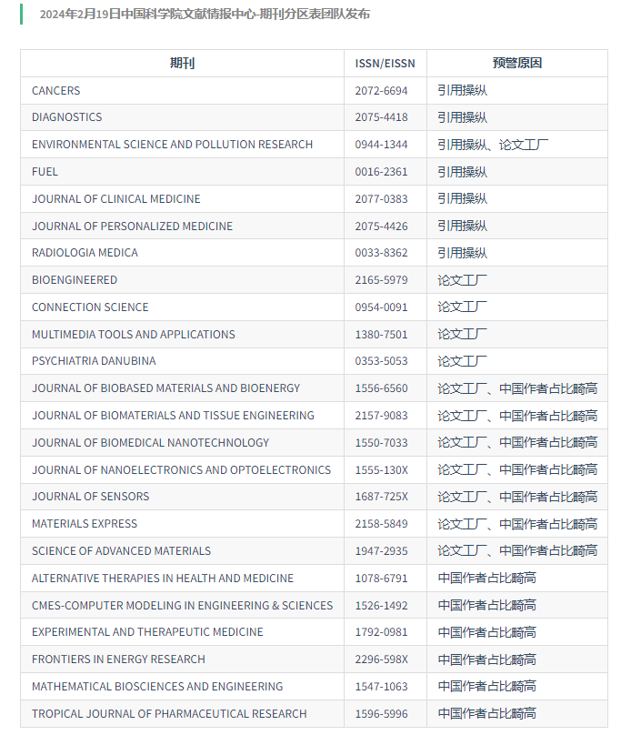 以下是為大家介紹的2024年中科院發(fā)布的《國際期刊預(yù)警名單》,供大家參考: