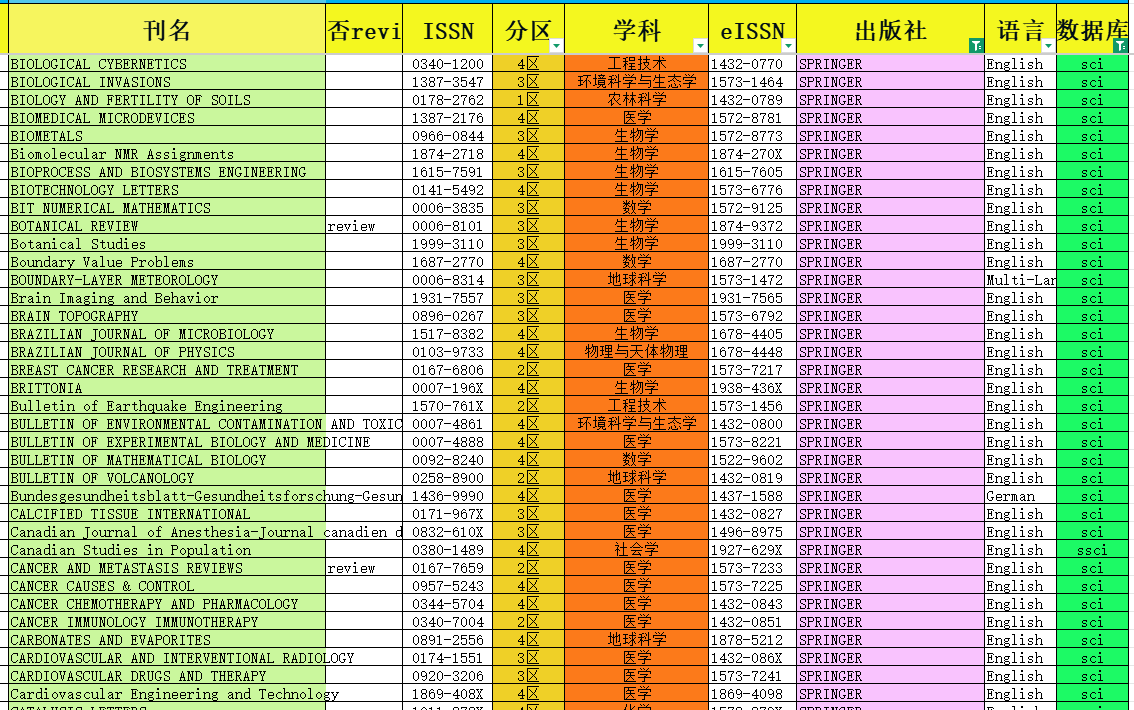 1、Springer旗下被sci收錄的期刊