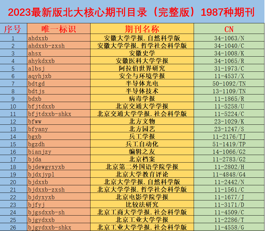 3、2023最新版北大核心期刊目錄(完整版)1987種期刊