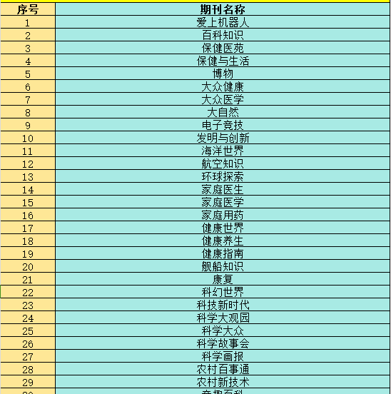 3、2024年中國科技核心期刊(新增科普卷),本次共計收錄期刊45種,以下為詳細目錄: